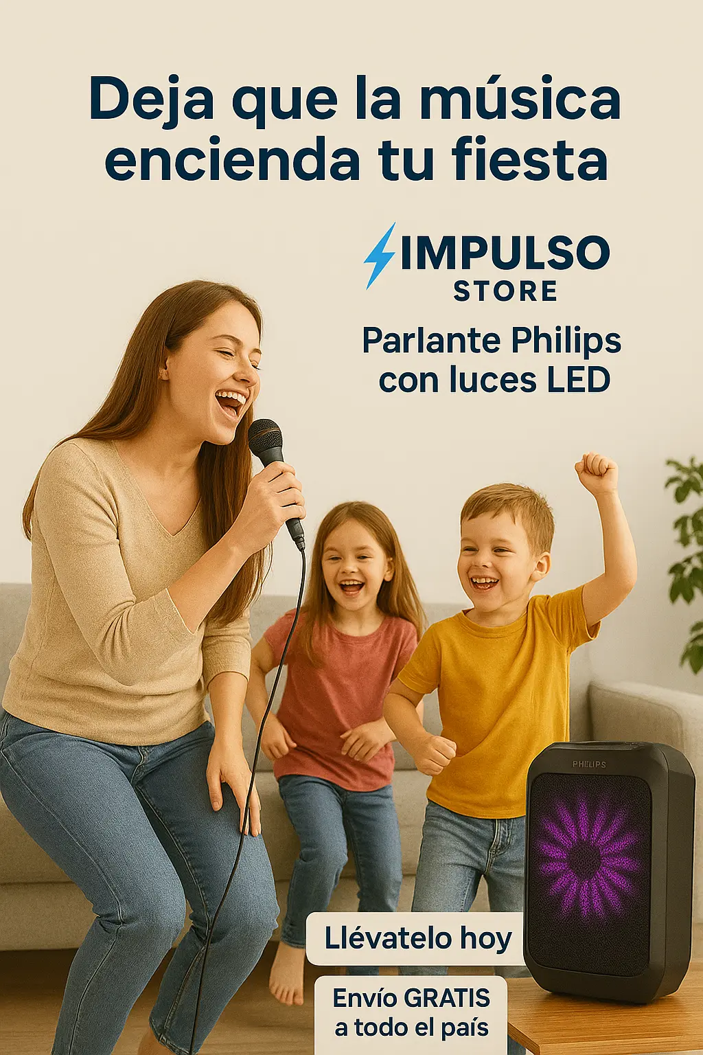 El Philips TAX2208/00 no es solo un parlante, es una experiencia sonora y visual que transformará tus encuentros. ¡Prepárate para bailar y cantar sin parar!