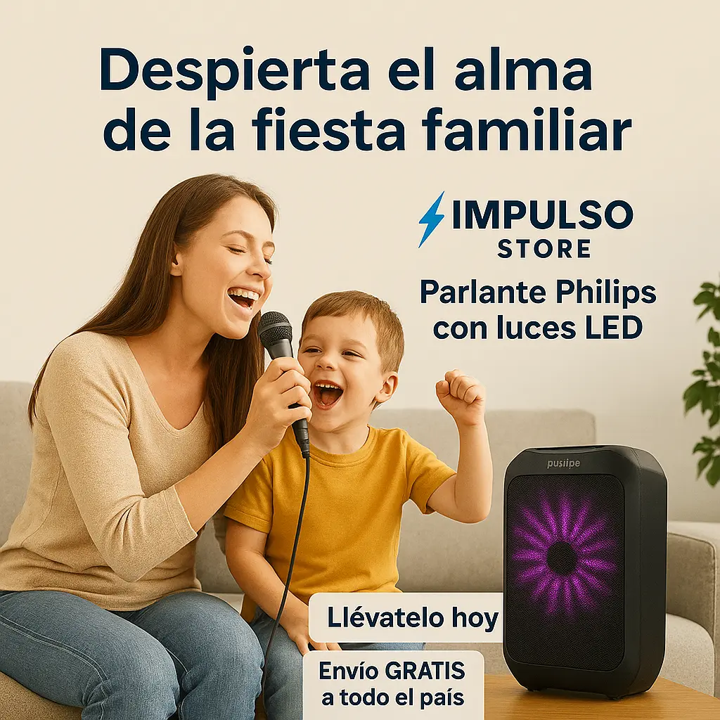 Este parlante compacto y potente es el alma de cualquier reunión. Con su impresionante sonido y sus efectos de luces LED multicolores, te permite llevar la fiesta a donde quieras, ya sea en casa, en el parque o en una reunión con amigos.